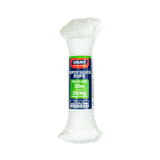 Island Enterprises LimitedThis GRUNT Supersilver Rope 4mm x 20m is a high quality high strength rope. It is multi-purpose for boats, trucks, trailer and farm use. It resists...