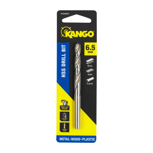 Island Enterprises LimitedFeatures Four-cut design 135 split point Thicker core Rapid eject flute Chamfered edges Usage Metal Wood Plastic The Kango 6.5mm HSS Drill Bit...