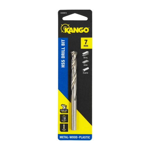 Island Enterprises LimitedFeatures Four-cut design 135 split point Thicker core Rapid eject flute Chamfered edges Usage Metal Wood Plastic The Kango 7mm HSS Drill Bit i...